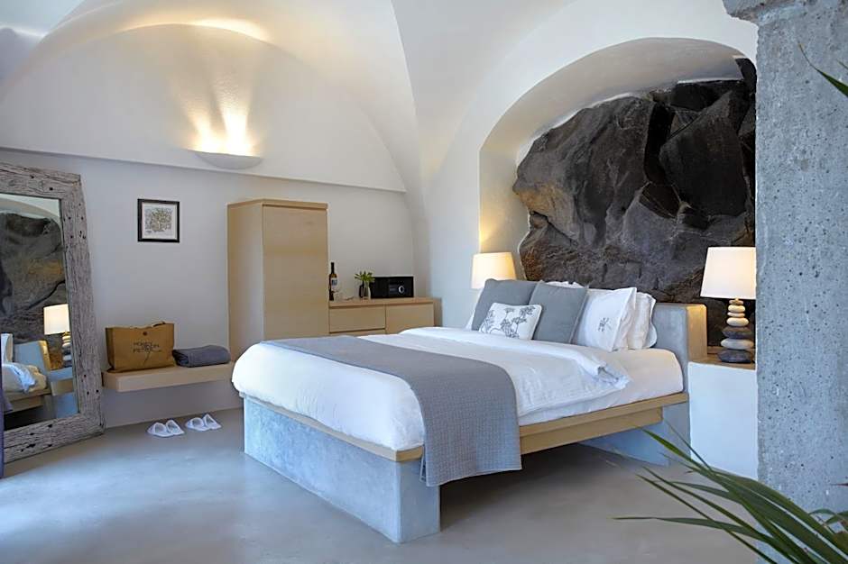 Offering Caldera views, these uniquely decorated suites consist of one double bedroom, spacious living area with a sofa, a uniquely designed bathroom and indoor hot tub. Daily maid service is available.
